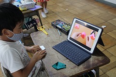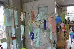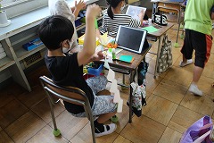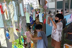 いつのまにか6月も終わり、7月に入りました。最近は雨の日も多く、梅雨らしい天気が続いています。そして、来週には七夕ということで、2年生が短冊を書いて、ささ飾りを作りました。それぞれ、願い事を短冊に書いて、ささにの葉に飾りました。「サッカーせんしゅになれますように」「まほうがつかいたい」「しんがたコロナウイルスがなくなりますように」など、思い思いの願い事を書きました。また、タブレット端末を使い、ささ飾りの作り方を調べながら、おりひめやひこぼしも作りました。ささが華やかに飾り付けられ、子どもたちも満足げな表情でした。7月7日は晴れるといいですね☆彡