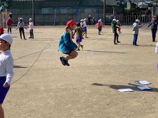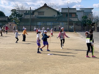 業間に行われている「かけあし運動」とあわせて、今週の月曜日から「なわとび運動」もスタートしました。なわとび運動は、難易度別の「なわとびカード」を自分の力量に合わせて選び、その中の技を順番にチャレンジしていく流れで行っています。