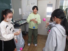 玉を振り1回転させ、けん先で受ける)に挑戦していました。なかなか成功しない中、「