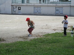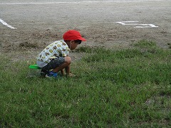時間がきて、虫を捕まえた子の人数を先生が確認すると、クラスの1/3ほどが虫かごに虫を入れていることが分かりました。頑張りましたね!大切に育ててほしいと思います。