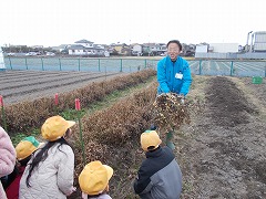 2年生が、収穫体験に出かけました。春の野菜、秋の野菜でお世話になったJAの野菜名人に、今日は落花生の姿や収穫の仕方を教えてもらいました。