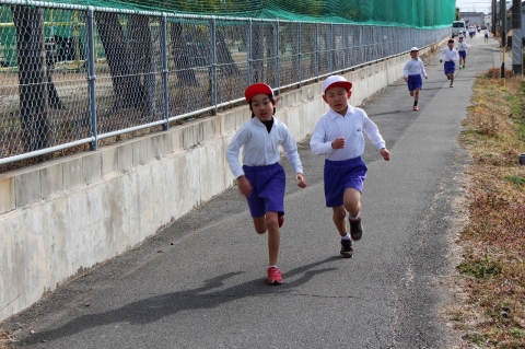 インフルエンザの流行により1週間遅れになりましたが、本日の午前中、校内マラソン大会が行われました。冷たい北風が吹く中でしたが、どの学年の児童も自分の目標をもち、一生懸命に走る姿が見られました。これまでのかけあし運動の成果がみんな出ていたと思います。保護者のみなさんも応援にかけつけていただき、あたたかい声援をいただきました。ありがとうございました。また、開催日が延期になったにもかかわらず、マラソン大会のお手伝いをしていただいたPTA役員のみなさん、本当にありがとうございました。