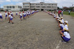 運動会の練習も大詰めになってきました。応援の練習や表現ダンスの練習など、子どもたちは毎日頑張って練習に取り組んでいます。今日は4・6年生合同でソーラン節の練習をしました。前回の合同練習後に、6年生の子たちは特別練習をしており、今回の合同練習では4年生に細かな所まで丁寧に教えていました。一通り個別練習を終えたら、通して演技をしました。隊形移動や掛け声など、本番と同じように演技をし、最終の確認をしました。これまで教えてもらったことを存分に発揮し、どの子も一生懸命に踊ることが出来ました。最後は、6年生の子たちの全力の演技を、4年生の子たちが見ることをしました。いつもの練習では見ることの出来ない6年生のお兄さんお姉さんたちの迫力のある演技に、4年生の子たちは目が釘付けになっていました。よい伝統が引き継がれていく瞬間ですね。