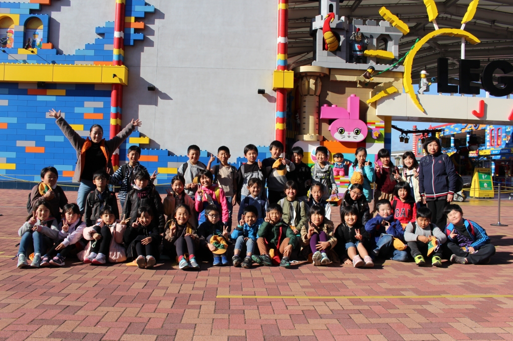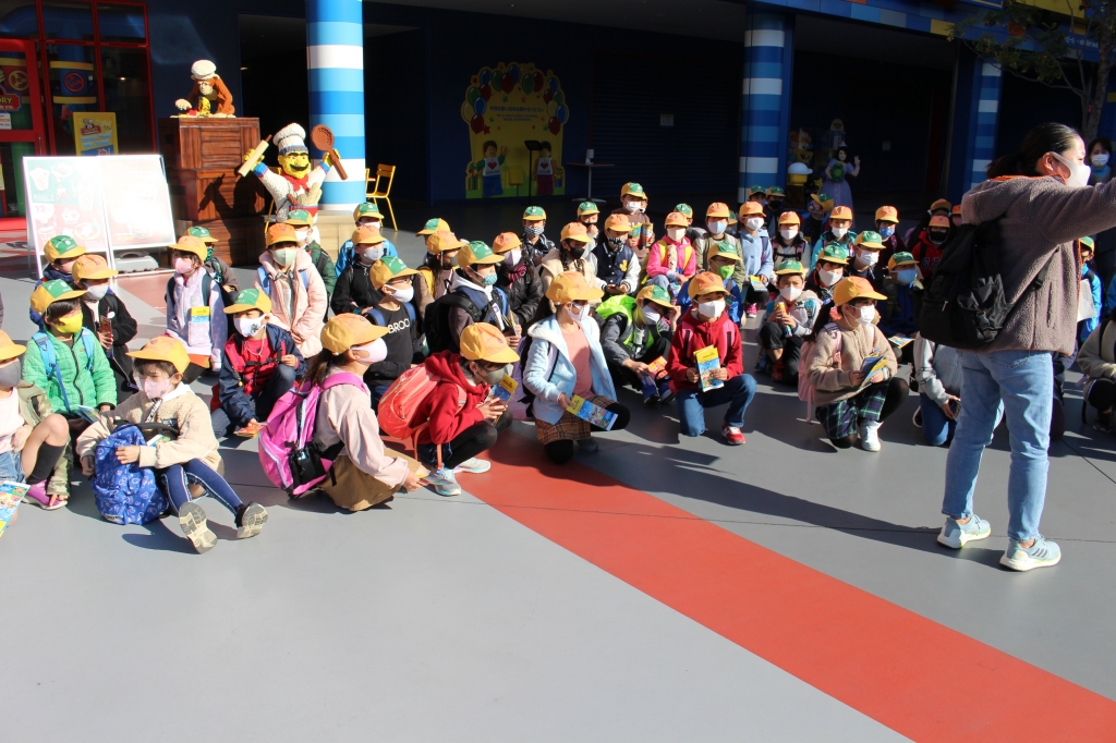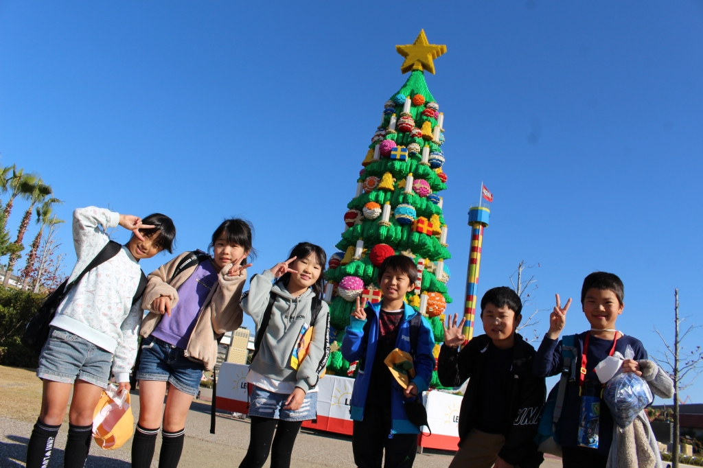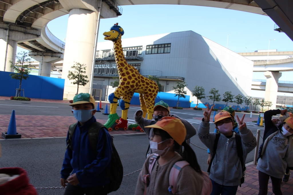 12月1日(火)、3年生は社会見学でレゴランドに行きました。この時期の社会見学、感染症予防には細心の注意を払って、バス乗車の際はしっかり消毒をして出発です。レゴランドに着くと、レゴで作られたカラフルなキリンや海賊がお出迎えをしてくれ、子ども達のテンションも最高潮に!!子どもたちは入場を待ちきれない様子で、スタッフの方の話を聞きました。