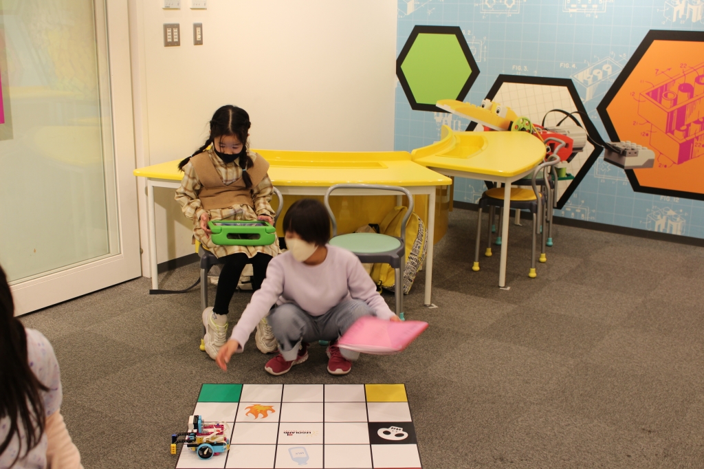 プログラミング教室では、レゴで作られたロボットに、一つ一つ指令を入力し、ロボットを動かしました。どこまで進むか、どうやって方向を変えるかなど、試行錯誤しながら思い通りにロボットを動かす喜びを味わうことができました。
