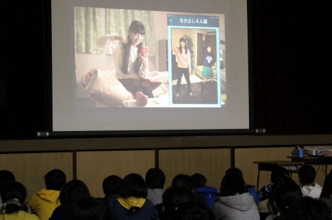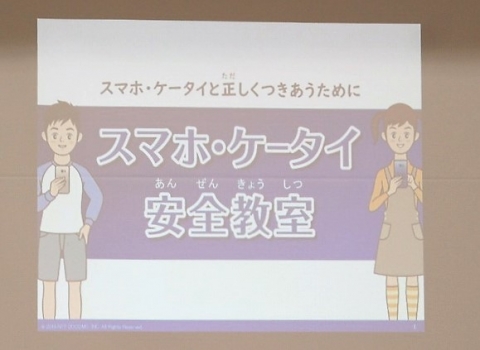 今日の午後、NTTドコモの方を講師に「スマホ・ケータイ安全教室」が行われました。5時間目には4年生が、6時間目には5・6年生が行いました。これは、スマホや携帯電話の正しい使い方を身につけ、安全に使うことができることを目的にした教室です。自分の名前などの情報や写真などを安易にSNSへ投稿することの危険性やLINEなどを使った文字だけでのやりとりにおける友達とのトラブルなどを再現ドラマの映像やわかりやすい説明で、丁寧に教えていただきました。