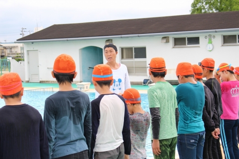 梅雨の季節で、なかなかよい天気になりませんが、各学年の水泳指導もまとめの時期になりました。そんな中、今日の4時間目に6年生が「着衣永」の授業を行いました。講師の先生は、いつも水泳指導をサポートしていただいている二宮先生、橋本先生、渡邊先生です。