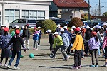 長い休み時間に、異学年同士がドッジボールを行っています。児童会が異学年同士の交流を深めようと計画しました。今日から4日間、スポーツ大会が行われます。1~6年まで一緒に行うため、ボールは転がし、転がす手や円の大きさなどにハンディをつけてあります。みんな元気にボールを転がしたり、逃げたりしています。しっかりと交流を深めましょう。