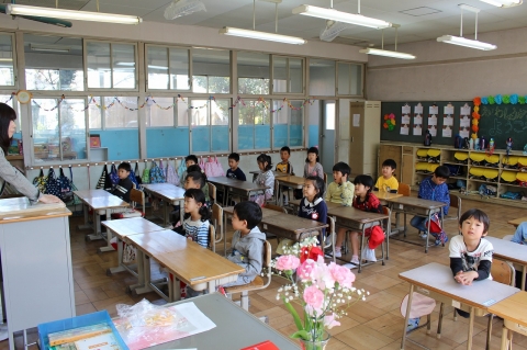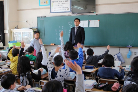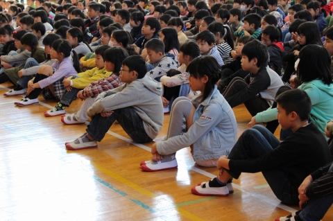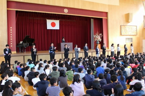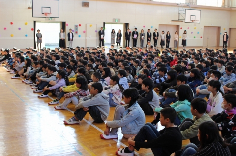 その後、始業式が始まりました。1年のスタートであり、どの児童も新たな気持ちで式に臨み、校長先生のお話をしっかり聞いていました。また、担任の先生の発表では、わくわくした気持ちで発表を聞き、それぞれの先生方にあたたかい拍手を送っていました。