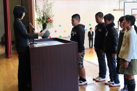 始業式に続いて、前期の児童会役員の認証も行われました。児童会役員のみなさんには、自分の持てる力を出し、永和小学校のためにリーダーシップを発揮してもらいたいと思います。
