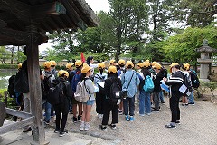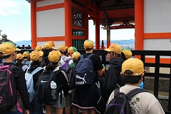 5月1日(木)2日(金)、6年生が、京都・奈良方面へ修学旅行に出かけました。1日目は、爽やかな天候のもと、法隆寺や東大寺を見学しました。法隆寺では、世界最古の木造建築の特徴について学び、東大寺では、建物や大仏の大きさに感嘆の声をあげました。宿では、友禅染に取り組み、京都の伝統芸能のよさを味わいました。2日目は、あいにくの雨模様でしたが、金閣寺や二条城、清水寺を見学しました。清水坂では、買い物も楽しみました。全員が参加し、元気に帰ってくることができました。この旅行を通して、歴史を肌で感じながら学んだことを、これからの学習に生かしていけたらと思います。