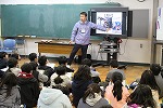 最初に、視聴覚室に全員が入り、新聞の役割と家に届くまでの様子、新聞記事の書き方や構成について、説明を聞きました。