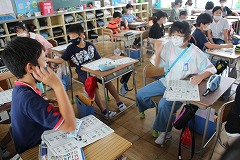 席替えや学習、レクリエーションや感染症予防についての話など、4時間の短縮授業でしたが、学年に応じて授業をしていました。