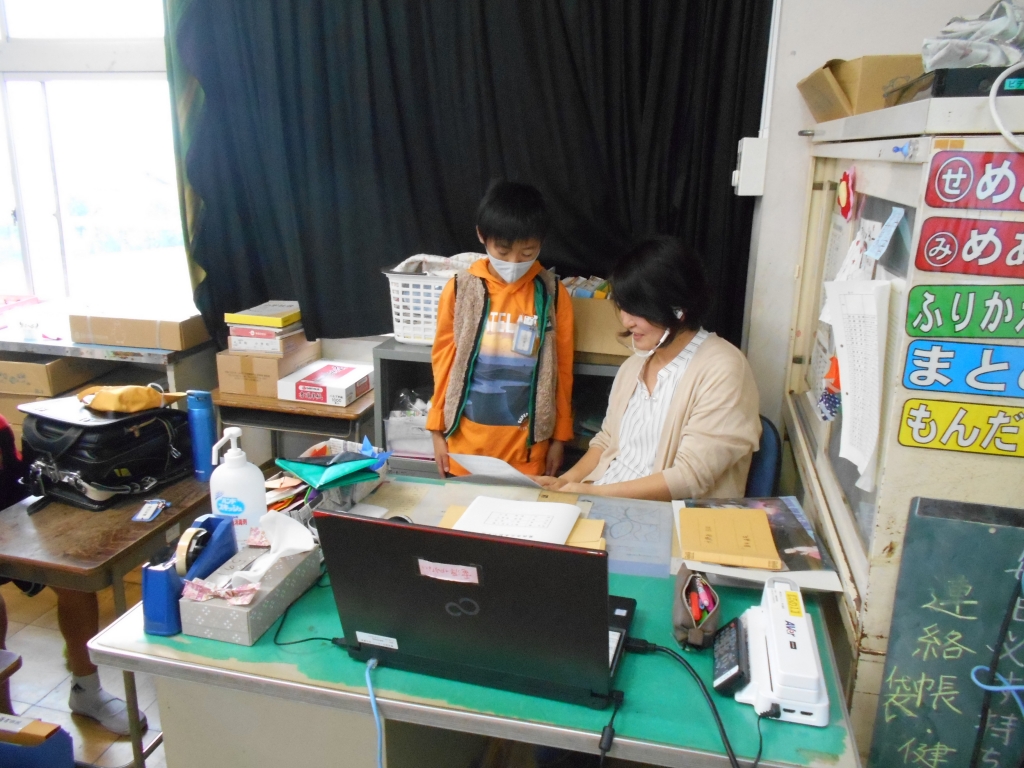 そして、一年生の子どもたちにとっては初めてとなる通知表。どの子もドキドキ、ワクワクの様子で受け取っていました。担任の先生からは、頑張ったことを褒めてもらったり、もっと伸ばしていくためのアドバイスをもらったりしました。後期に向けての励みにしていけるといいですね。