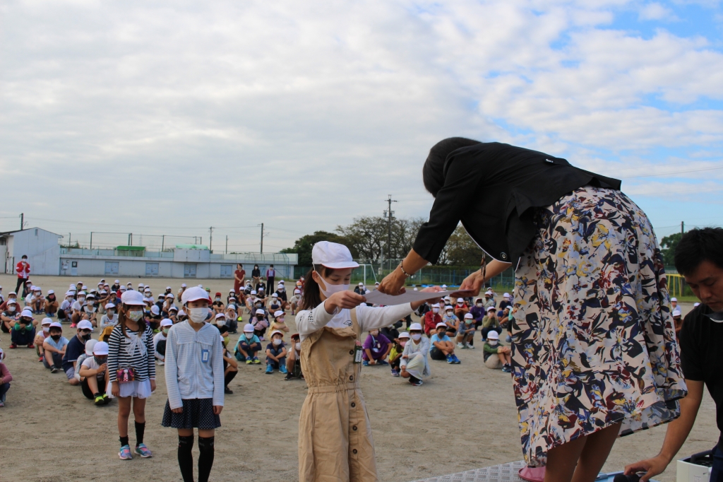 前期の児童会役員の子たちにとっては、全校の前に出て初めての仕事でした。そして、後期児童会役員、学級委員、代議員の子たちは校長先生から認証状を受け取りました。学校のために、どの子も大いに活躍してくれることでしょう。他にも、歯の優良児童や読書感想文の表彰も行われました。