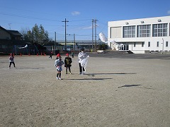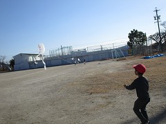 凧あげスタート!子どもたちは、風で上昇する凧を嬉しそうに眺めたり、凧に風を受けさせるために走ったりしました。「ねえ、見てて!」と運動場を縦断して走ったり「上がった!上がった!」と喜んだりと、全員が凧を上げることに成功しました。みんなが気持ちよく凧揚げをするための約束をしっかり守り、楽しく遊ぶことができました♪