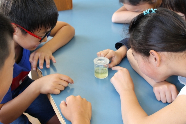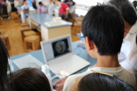 グループで顕微鏡を用意し、メダカの卵の中を観察しました。また、伊藤先生が用意した電子顕微鏡でも観察しました。いろいろな卵を観察することで、成長につれて卵の中の様子も変化していくことをみんな知ることができました。今後の理科の授業のために素晴らしい学びができたと思います。これまで以上にメダカに興味をもち、伊藤先生のようなメダカ博士をめざす児童もいるかもしれません。