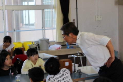今日の午前中、メダカ博士である伊藤敏彦先生をお招きし、5年生の児童を対象にメダカの生態についての出前授業が行われました。