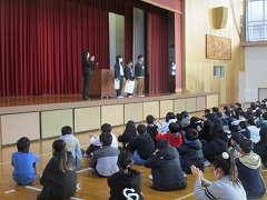 冬休みが終わり、子どもたちが永和小に戻ってきました。今日は、新年最初の朝礼です。