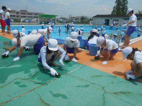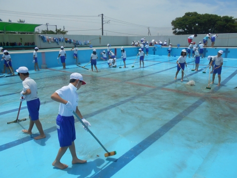 プールを美しくピカピカに清掃してくれた5年生・6年生のみなさん、本当にありがとうございました。