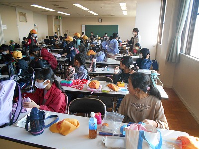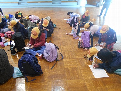 美浜少年自然の家に着いて入所式をしたら、一つ目のプログラム、ウォークラリーの開始です。よく晴れた青空の下、友達と協力してチェックポイントを回り、ゴールを目指しました。 ウォークラリーも無事に?終わり、お腹も空いたところで、午後からのキャンドルサービスに向けてお昼ご飯です。お家の人が作ってくれたお弁当で、元気100倍!!
