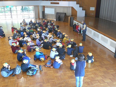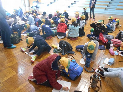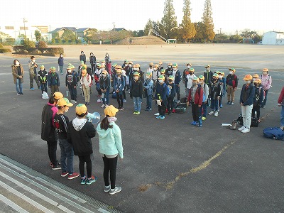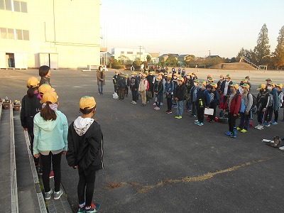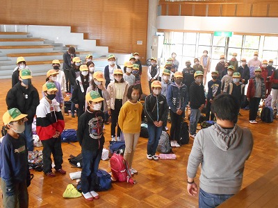 「おはようございます!!」元気のよいあいさつと共に、5年生が登校して運動場に集まってきました。今年度、いろいろな学校行事が中止となる中、11月12日(木)、5年生の教育キャンプが日帰りで行われました。子どもたちはこの日を心待ちにしていたようで、登校の様子からはワクワク感がとてもよく伝わってきました。