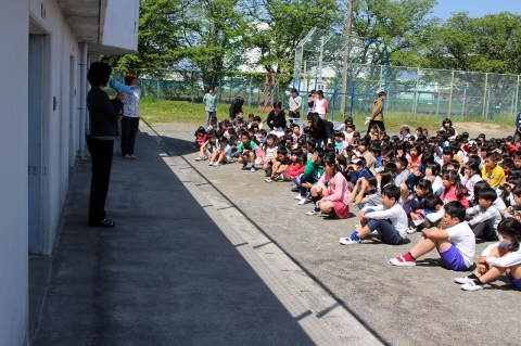 校庭の藤の花が開き、青空が広がる中、永和小学校では、第1回の避難訓練が行われました。まずは、教室で担任の先生と避難経路や気をつけることを確認しました。その後、火災が発生したサイレンが鳴り響き、放送や担任の先生の指示で避難をしました。誰もがおしゃべりをせず、すみやかに避難をする姿が見られました。全校児童が無事に避難できた後に、校長先生からのお話を聞きました。みんなが真剣に取り組むことができた避難訓練であり、もしかの時に今日の訓練をしっかり活かしていきたいと思います。