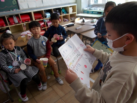 そして、今週(2月4日(火)と7日(金)の2日間)、えいわっ子ランドが開催されました。2年生の教室や廊下を使い、2年生のみんながアイディアを出し合って考えた遊びやゲームがたくさん用意されていて、招待された1年生のみんなは、始まるのをわくわくして待っていました。