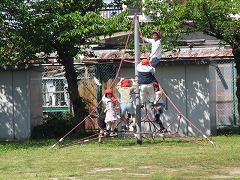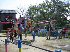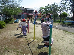 公園に着いたら、遊びタイムです。初めてやってきた子たちにとって、飛行機の形をした遊具は魅力的らしく、運転席は時間になるまで人が途切れませんでした。また、三角形のロープタワーの上から友達に向けて「お~い!」と気持ちよさそうに声をかけている子もいました。滞在時間は30分ないくらいでしたが、たっぷりと遊んだ1年生でした♪