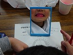 平成27年度から取り組んでいる「バトンタッチ運動」の一つ【歯磨き指導】を、2年生で行いました。赤い染め出し液で、歯の歯垢などを鏡を見てチェックしました。歯と歯や歯と歯茎の境目に赤い歯垢がのこっている子は真っ赤になり、びっくりしていました。そして、養護教諭から歯の磨き方を教えてもらいながら、磨きなおしをしました。最後は、とてもきれいになりました。