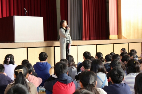 また、交通事故など冬休みの生活で気をつけることのお話がありました。最後に校歌を歌い、冬休み前の最後の集会をビシッと終えました。