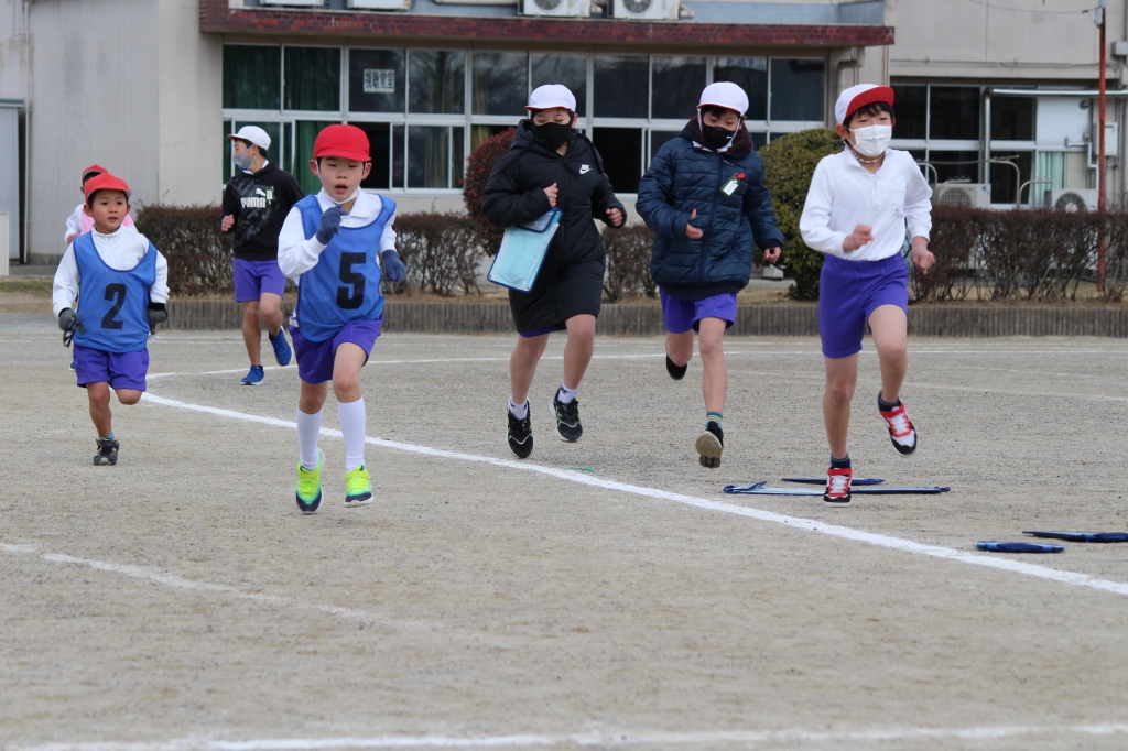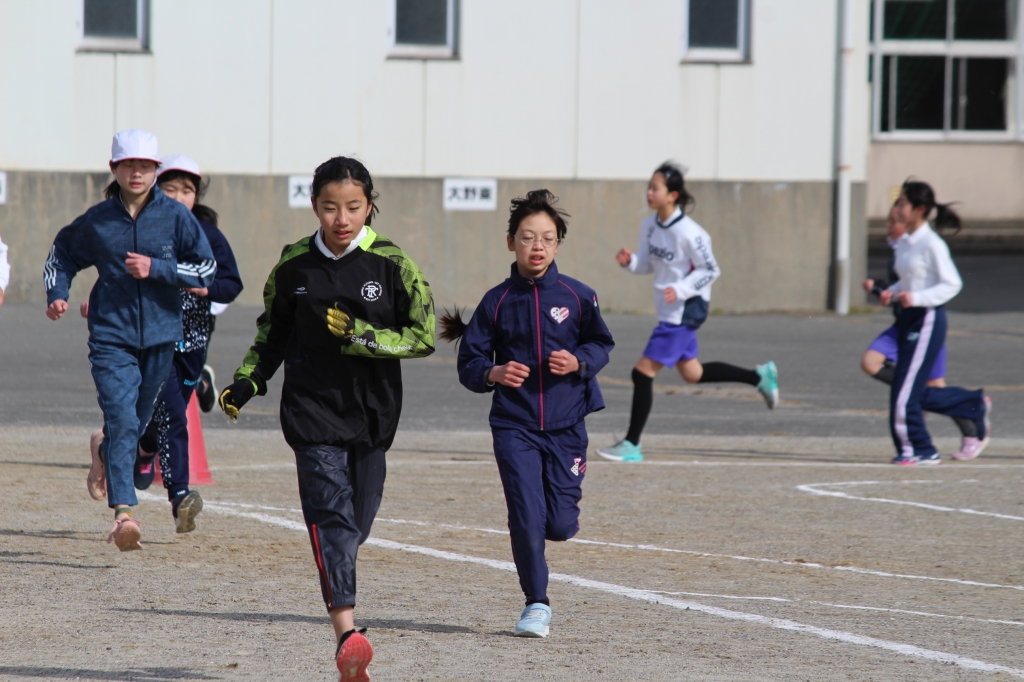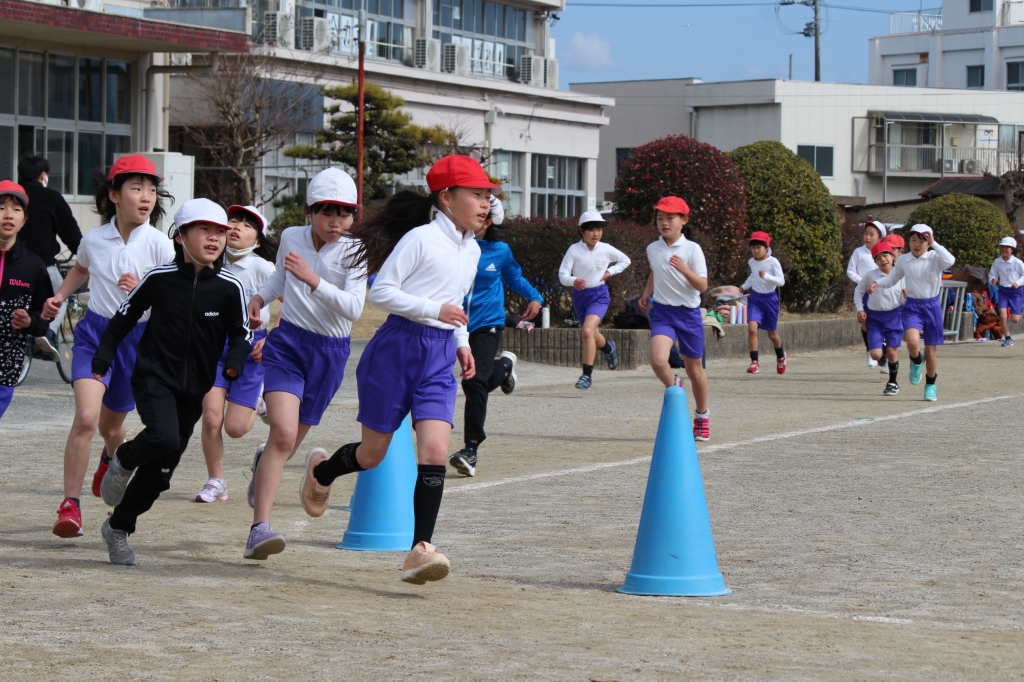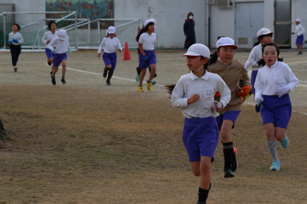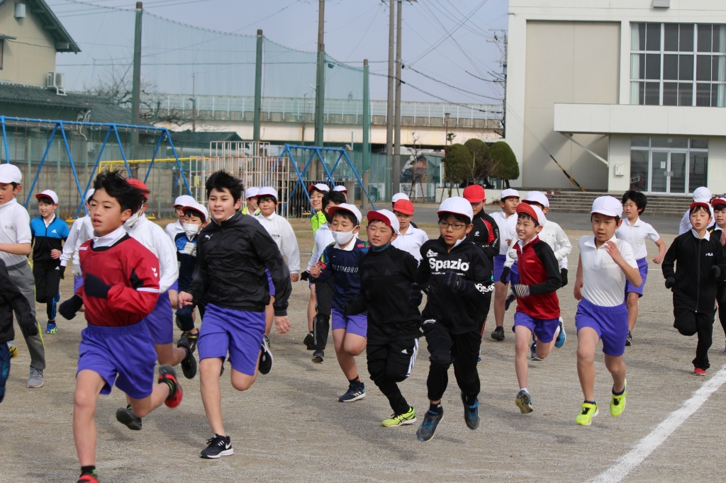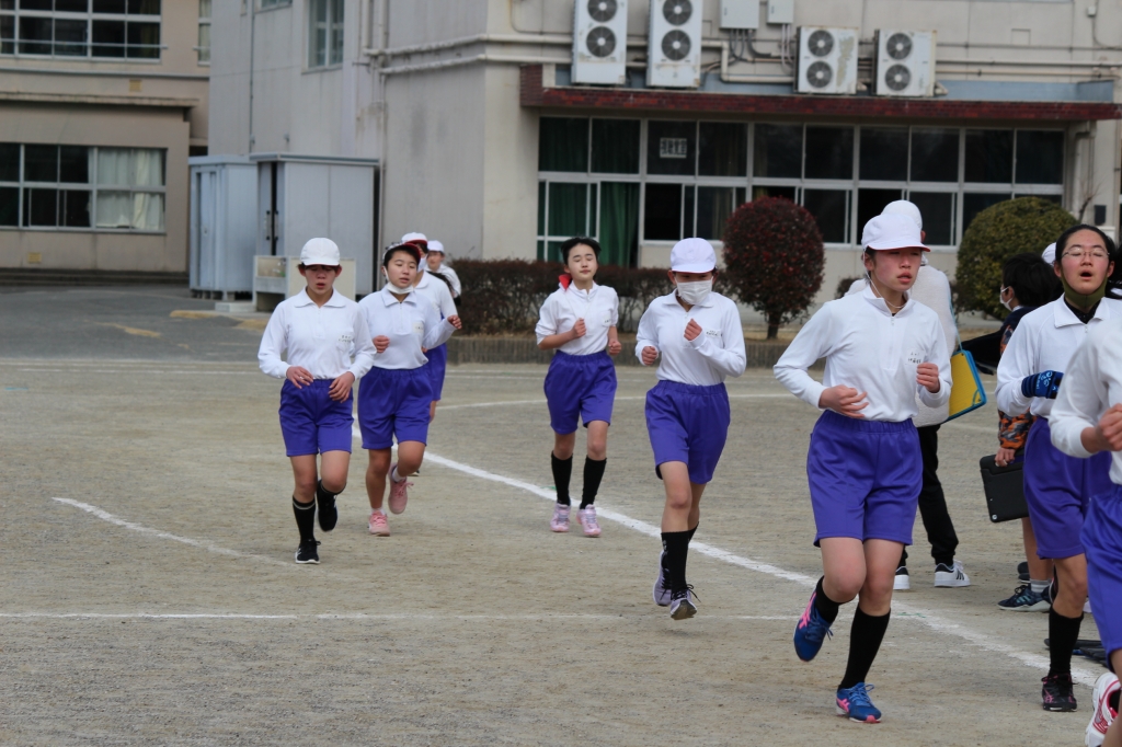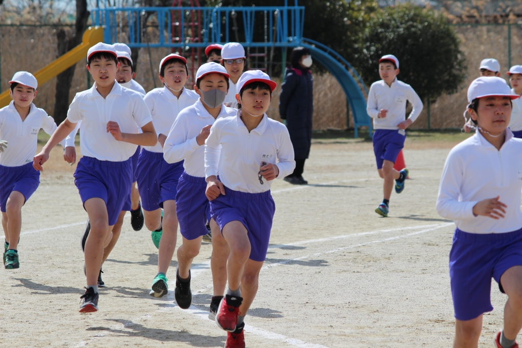今年度はいろいろな学校行事が中止や変更となる一年でした。2月18日(木)・19日(金)に行われたマラソン記録会も、取り組み方を一部変更して行いました。例年は校外へ出て走っていましたが、今年度は運動場にトラックをかき、校内での記録会となりました。また、いつもは業間に行っていた「かけ足運動」は、今年度は行わず、体育の授業で5分間走に取り組みました。この日の記録会に向けて、どの子も一生懸命練習に励んできました。