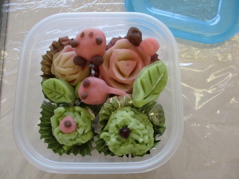 誰もがおいしそうな和菓子を作りあげることができました。わらびもちは、できたてをみんなでおいしく食べました。また、和菓子のお土産をうれしそうに家に持ち帰りました。和菓子職人さんの仕事にふれ、働くことのやりがいや楽しさを感じるひとときになりました。