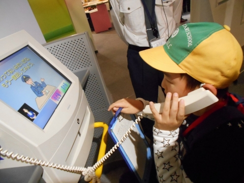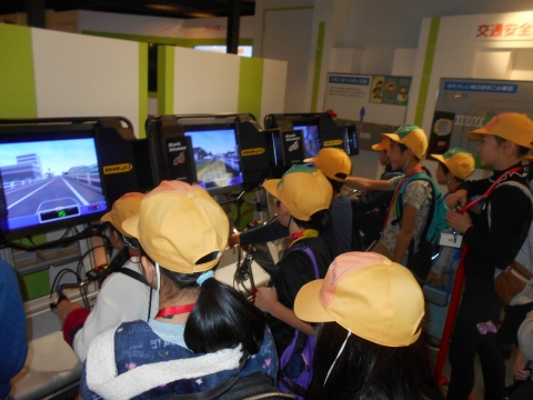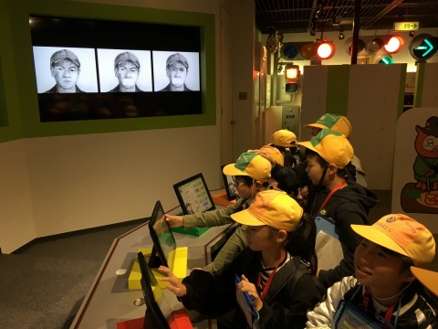 警察の仕事を映像で見たあと、通信指令室の見学をしました。事件・事故による110番が、連続的にかかっている様子がよくわかりました。そして、事件・事故に迅速に対応する警察のシステムも知ることができました。次に交通管制センターを見学しました。テレビなどで目にする道路の渋滞情報を発信する場所で、現在の道路状況が一目でわかるようになっていました。最後に警察の仕事を疑似体験したり、資料を見ることができたりする「コノハズクひろば」で体験学習をし、愛知県警察本部の見学を終えました。私たちの安心・安全の日常を保つため日夜働いている警察官の仕事に触れ、4年生のみんなは、たくさんのことを知ることができました。今後、見学したまとめを作り、学びをより深めるようです。