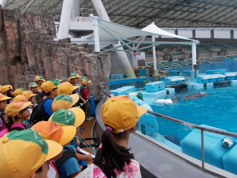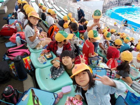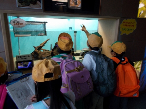 イルカやペンギンなど、たくさんの種類の生き物を見て、興味を持ち、メモをとるなど調べ学習をしながら水族館を楽しみました。グループでの行動もみんなでルールを守り、しっかりやり切ることができました。今後、生活科の学習で今日のまとめをしていくそうです。