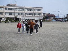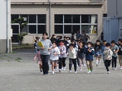 ハンカチなどで口元を押さえて煙の被害を最小限にすることも忘れません!運動場に出たらどのクラスも小走りになり、プール前にできるだけ早く集合です。避難場所に着いたら、集合・点呼・静かに待つの集団行動時の約束をきちんと守り、全員が避難を終えることができました。
