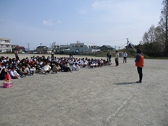 今日は、年度初めということもあり、2時間目に避難訓練を行い避難経路の確認をしました。