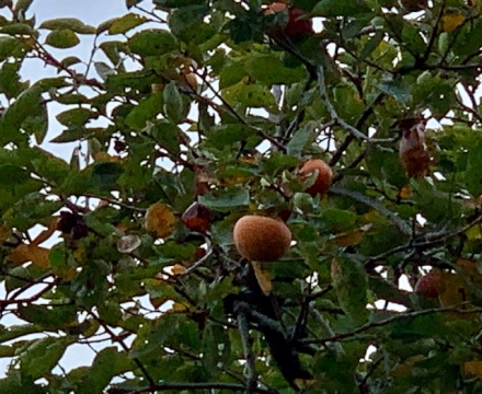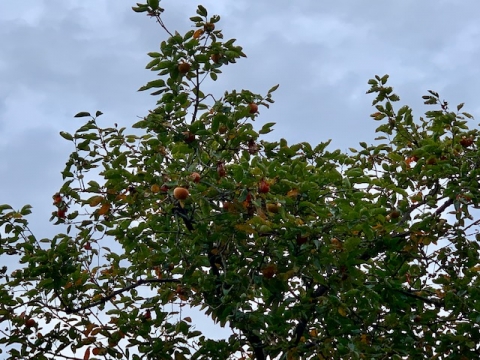 校庭にある柿の木にたくさんの柿の実がなり始めました。徐々に秋が深まってきています。