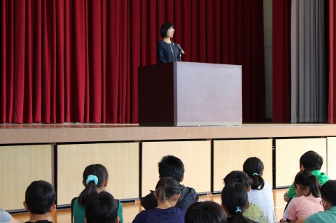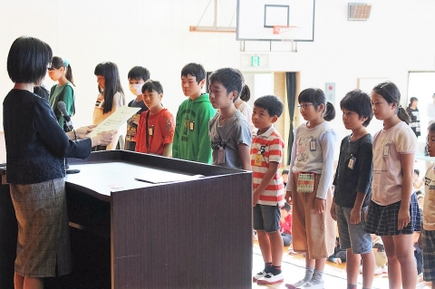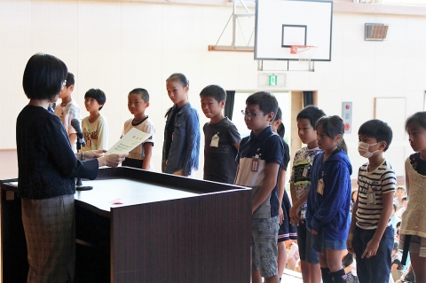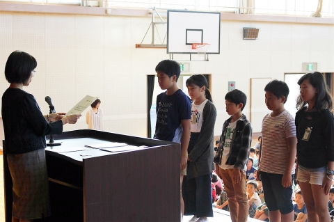 校長先生から後期に向けてエールを送るお話があった後、後期児童会役員、後期学級委員、後期代議員などの認証式が行われました。