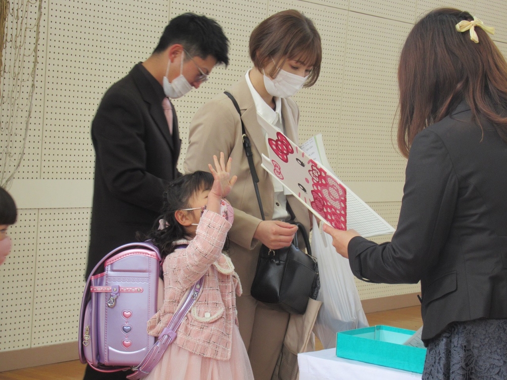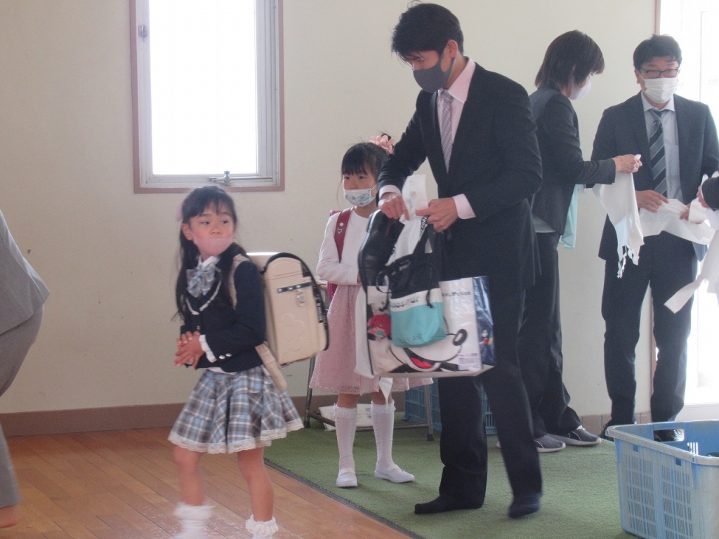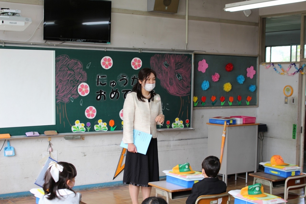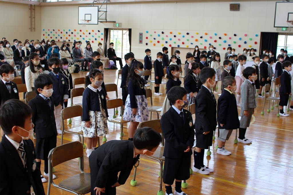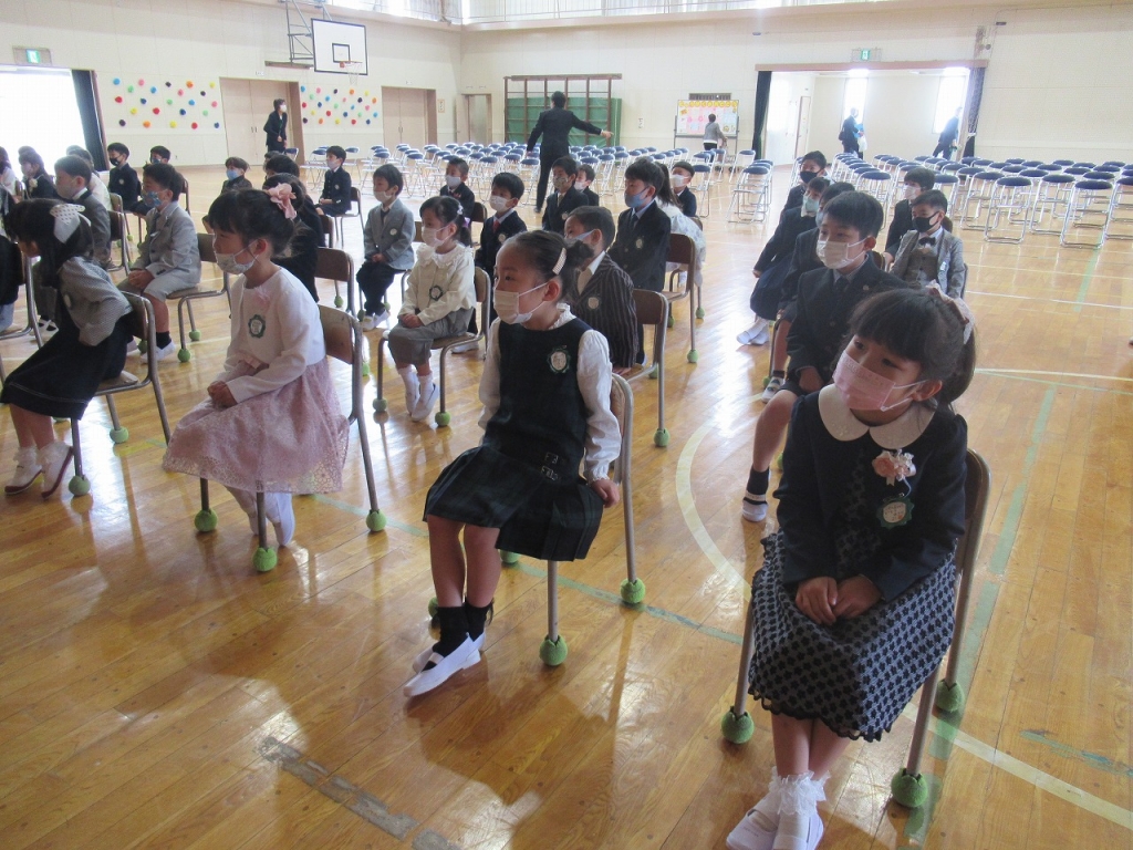 立ったり座ったり、礼をしたりと、号令に合わせて一つ人つの動きを丁寧に行うことができました。また、校長先生のお話も、しっかりと校長先生の方を見て聞くことができました。どの子も一年生として立派な姿でした。