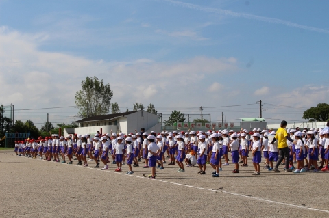 今日の1時間目、運動会に向けての全体練習が行われました。小学生だけで入場行進や開会式・閉会式の進め方などを練習しました。