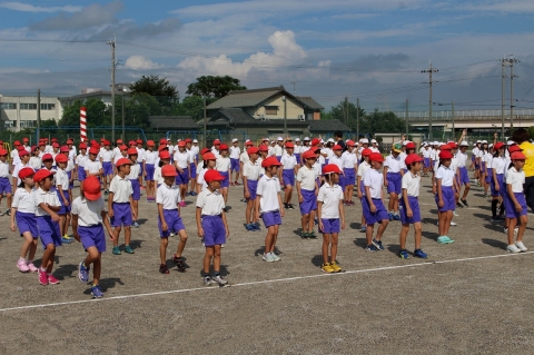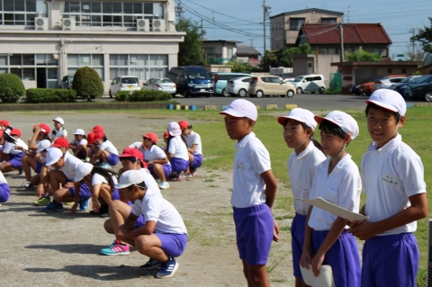 今年度初めての練習でしたが、6年生、5年生の高学年の児童がスムーズに動き、全校を引っ張ってくれたため、全校児童がビシッとした態度で進めることができました。「気をつけ」「休め」「礼」「回れ右」などの号令に合わせて、きびきびと動く姿が見られ、暑い中でしたが短時間で終えることができました。来週は中学生も参加して合同練習が行われます。今日のようなすばらしい態度、スムーズな動きで練習をし、小中合同運動会をどんどん盛り上げていきましょう。