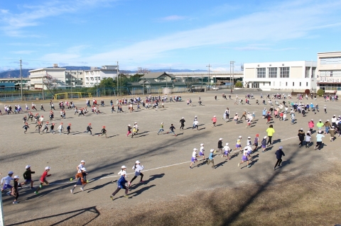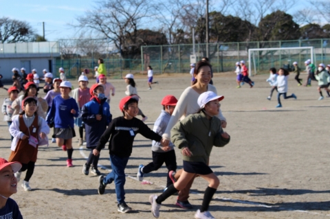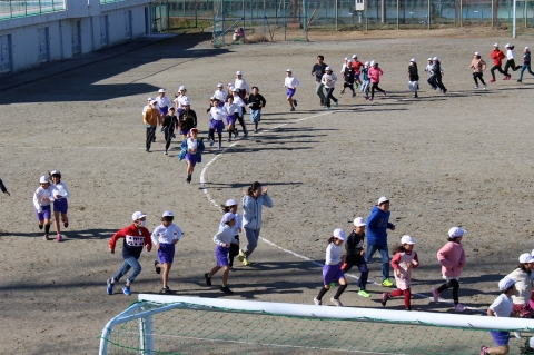 今週から「かけ足運動」がスタートしました。2月4日(火)に行われる校内マラソン大会までの間、業間に全校児童と先生たちで運動場を走っています。