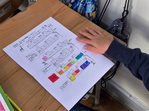 運動委員会の児童が司会進行をし、軽快な音楽が流れる中、みんなで5分間走っています。1周でも多く走ろうと全力で走る児童、自分に合ったペースを考えて走る児童など各々の目標に合わせて一生懸命に取り組んでいます。走り終わった後には「マラソンカード」に色を塗って、自分のがんばりを確認していました。