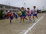 2・5年は、「3人でレッツGO!」でした。練習も少なく、なかなか3人の意気をあわすのは難しく早く歩いている組が多い中、調子を合わせて走っている組もありました。