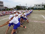全校での「綱引き」も、勝ったチームは大喜びで盛り上がっていました。パワーもあり、迫力がありました。