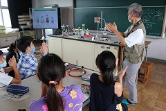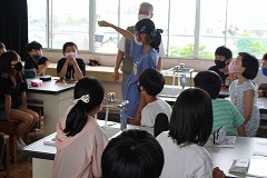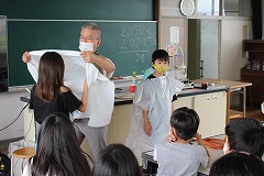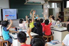 「は~い!」一番多く手が挙がったのは③番。ところが、正解は・・・①番、と発表され、ここでも子どもたちは驚いていました。「たったのそれだけ?」子どものつぶやきに、講師の先生は、人間の平熱(36.5℃)から0.85℃上がったら37.3℃。人間で言えば微熱に当たることに、子どもたちも納得の様子でした。