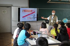 5年生の総合的な学習の時間は、環境に関したテーマで学習を進めています。今日は、講師の先生をお招きして、『ストップ温暖化教室』を行いました。地球上で絶滅の危険に瀕している動物を教えてもらい、その中に人間も入っていることに、子どもたちは衝撃を受けていました。また、日本でも、最近では暑い日が多く続いたり、紅葉が遅れたりすることから、地球の平均気温がだんだんと上がっていることにも触れ、過去132年の間にどれだけ平均気温が上がっているかクイズに答えました。