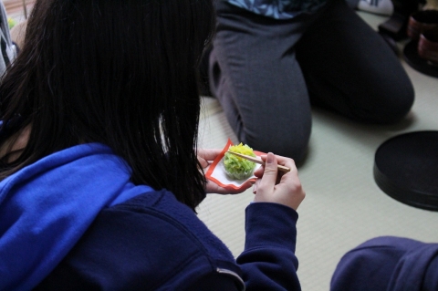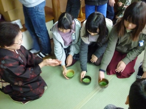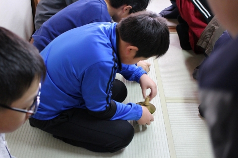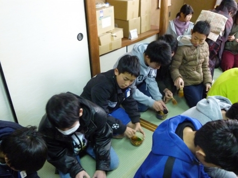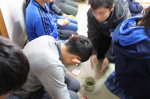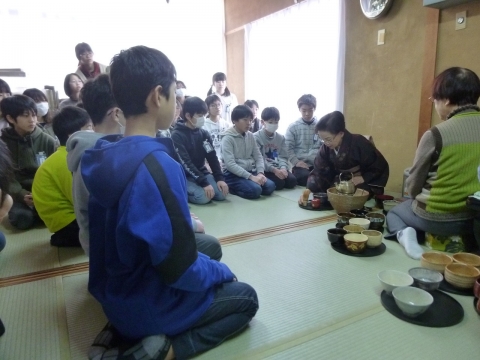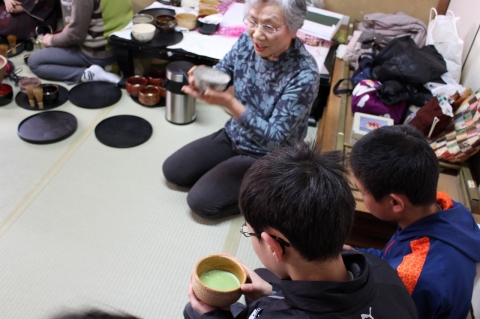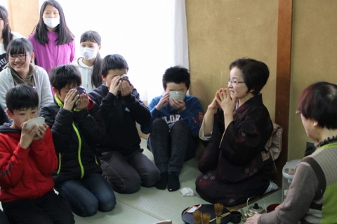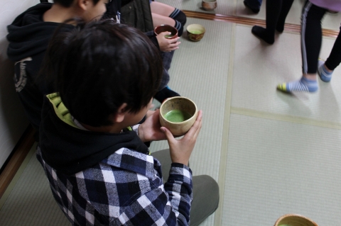 永和小学校には、和室の部屋があります。今日はその和室で6年生の茶道体験が行われました。6年生はこれまで「日本の文化」をテーマに総合的な学習の時間の勉強に取り組んできました。この茶道体験もその1つです。今日はクラスごとに1時間ずつ、茶道の先生(4名)の指導のもと体験を進めていきました。お茶の点て方、和菓子のいただき方、茶碗の持ち方、お茶の飲み方など茶道の作法を先生から優しく丁寧に教えていただき、一人ひとり順番に実践していきました。慣れない手つきながらもみんなお茶を点てることができ、和菓子もお茶もおいしくいただいていました。茶道の体験で、またひとつすばらしい日本の文化にふれることができたと思います。