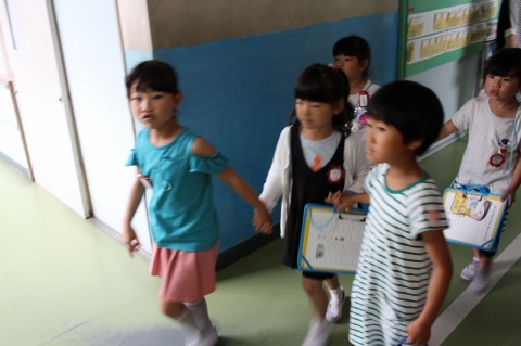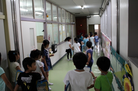 今日の1時間目、授業中にもかかわらず、廊下を歩き回る子どもたちがたくさんいました。「ここは職員室だよ」「先生たちのお部屋だよ」など、説明している声も聞こえてきました。